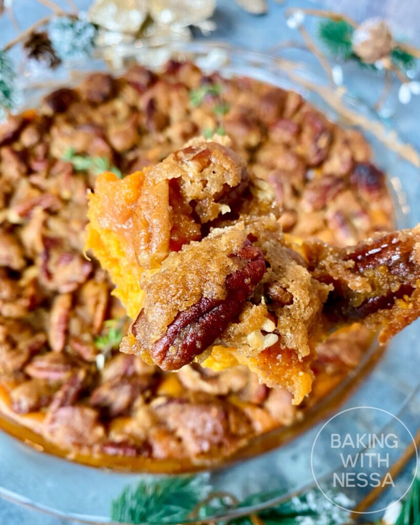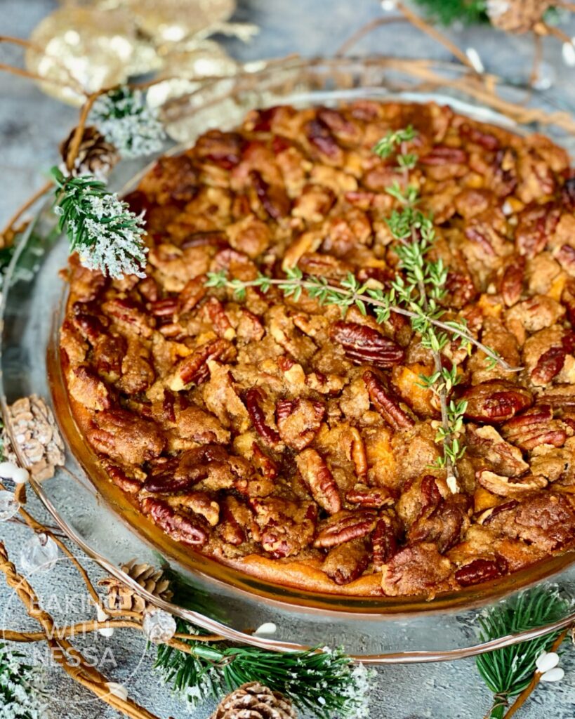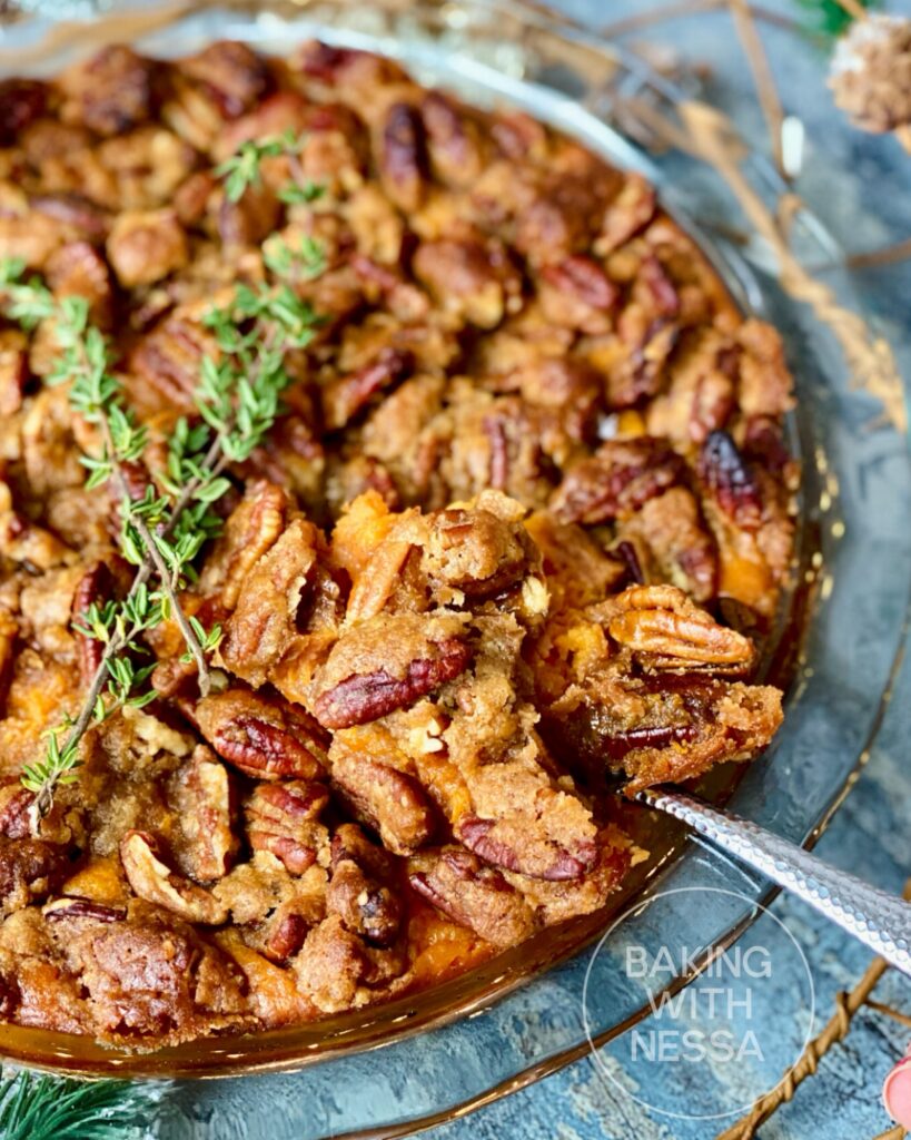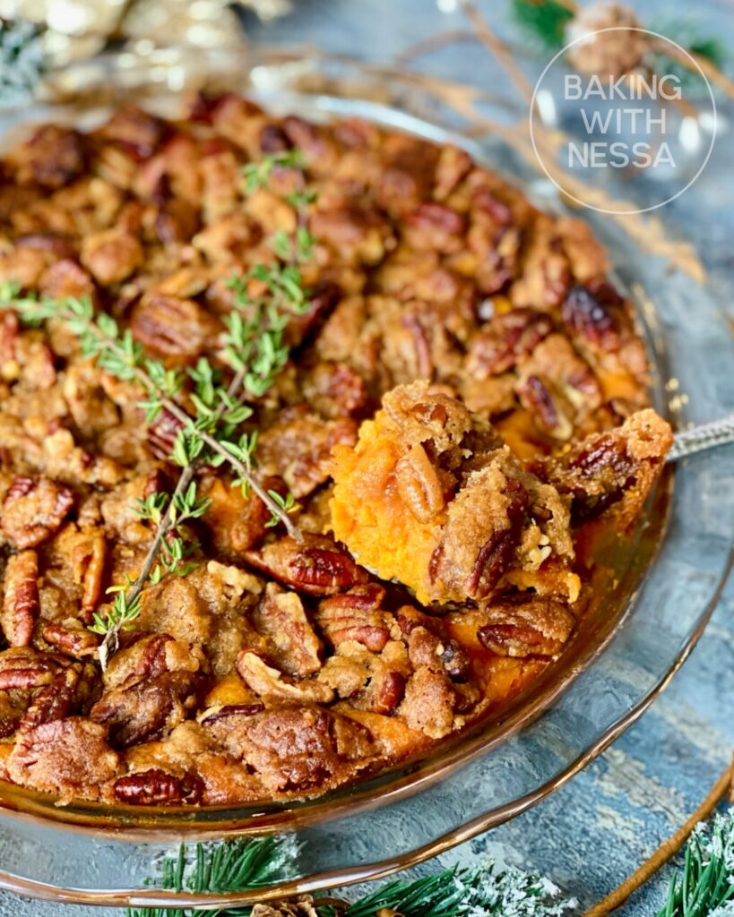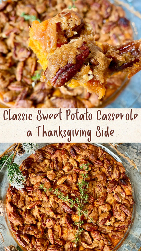 A cozy fall favorite, this Sweet Potato Casserole with Pecan Topping is the perfect Thanksgiving side dish. Creamy, buttery sweet potatoes are baked with a crisp, caramelized pecan crumble: No marshmallows needed! A comforting classic that brings warmth and flavor to your holiday table.