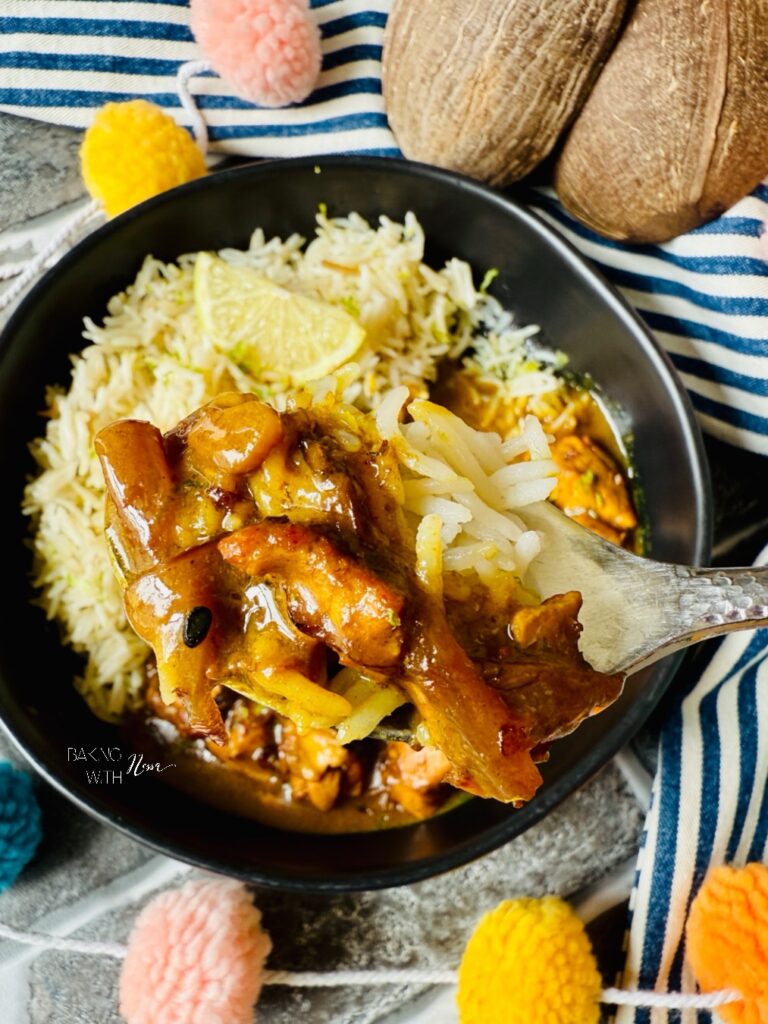 Serve the salmon curry with a side of coconut lime rice and a slice of lime. Enjoy & Bon Appétit!