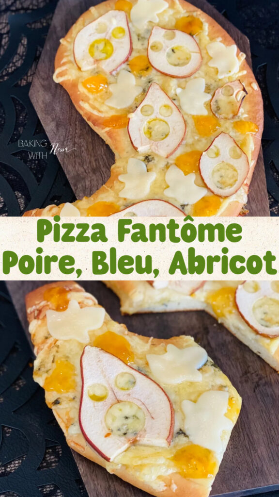 While your pizza is in the oven prepare the sliced cheese by using your favorite ghost cookie cutter.Once your Ghostly Pear & Blue Cheese Pizza is out of the oven, dress your pizza with the ghost cutout cheese and dollops of apricot jam.Slide the pizza onto your serving board. Enjoy with a your favorite mixed salad or just as is! "BONE" Appétit & Happy Halloween!