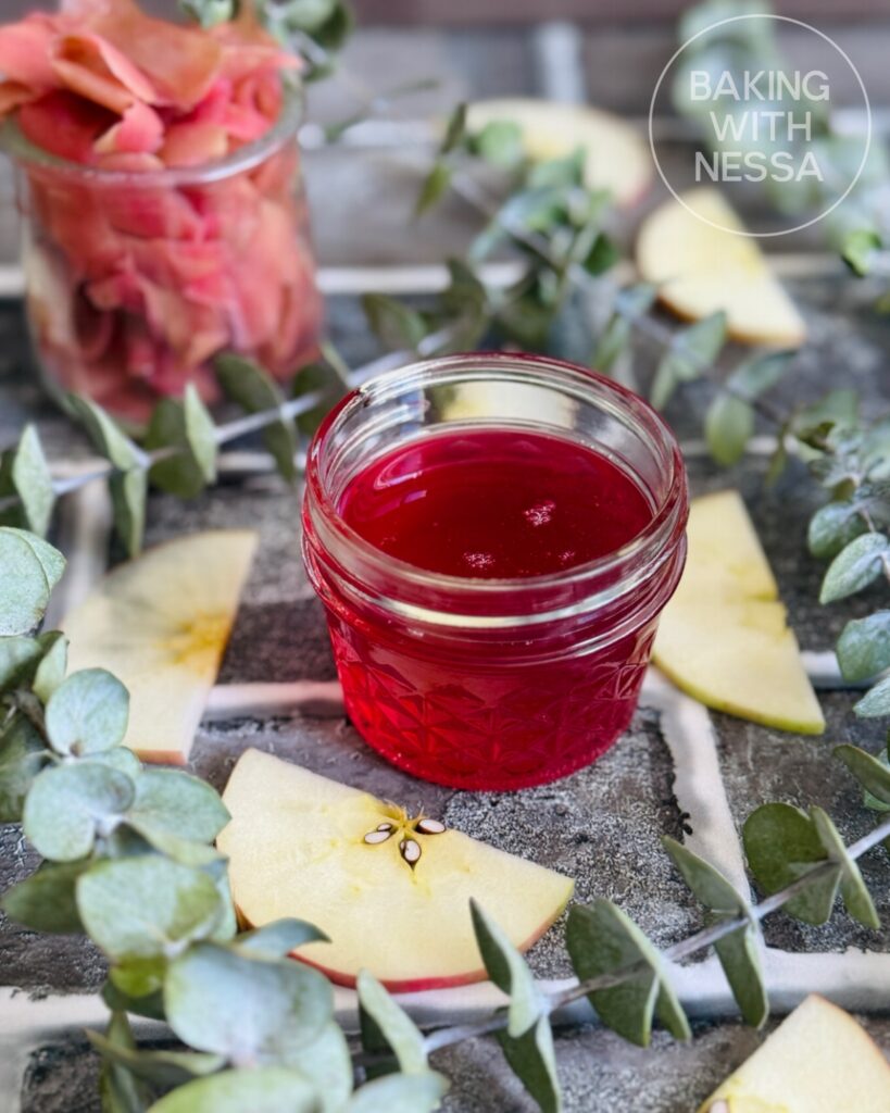 This fragrant apple-infused simple syrup captures all the comfort of autumn in a bottle. Made entirely from apple peels, it’s a beautiful no-waste recipe that turns kitchen scraps into liquid gold. Drizzle it into tea, cocktails, or over pancakes for a sweet touch of orchard magic.