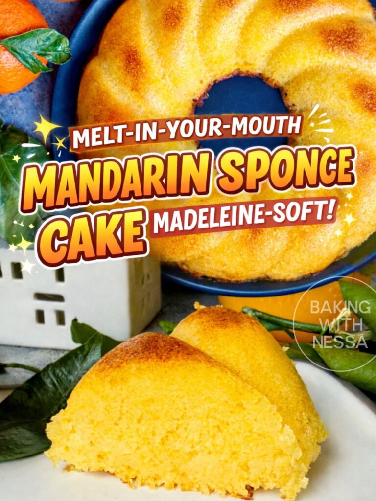 This mandarine sponge cake is delicately flavored with fresh mandarine zest and juice, offering a light, tender crumb inspired by classic French madeleines. Soft, airy, and elegant, it is the perfect dessert for afternoon tea, or any moment that calls for a refined yet simple bakery-style treat.