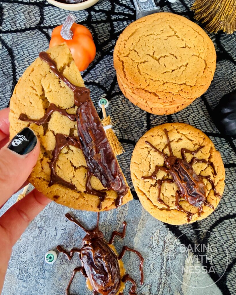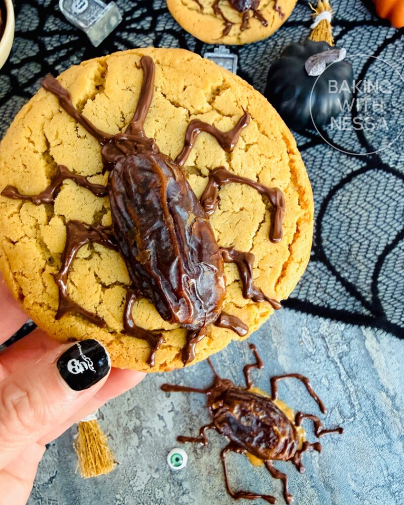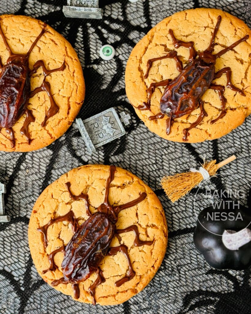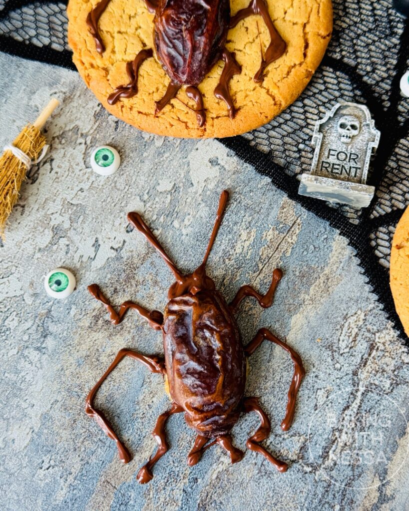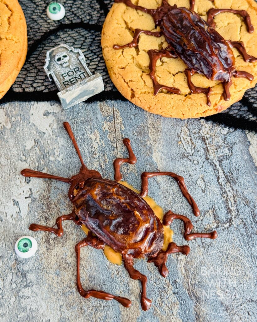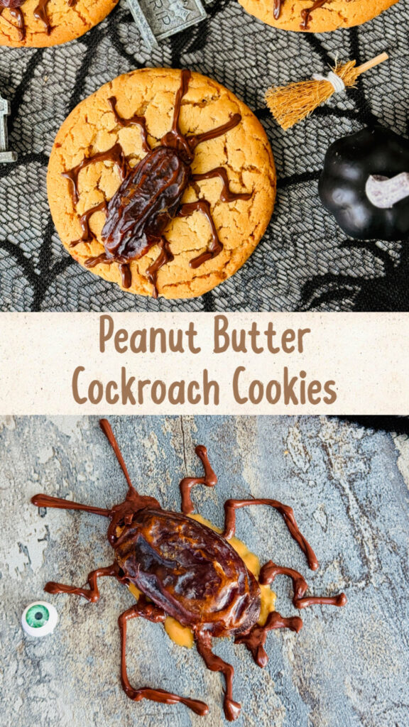 These Peanut Butter Cockroach Cookies are creepy, crawly, and dangerously delicious. Beneath their eerie exterior lies a soft, chewy peanut butter cookie topped with “cockroaches” made from sweet dates stuffed with crunchy peanut butter and drizzled with chocolate for that disturbingly real bug look. Squish them if you dare… and discover the most frightfully tasty Halloween treat!