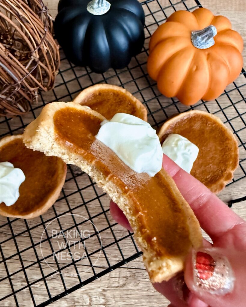 Pipe a dollop of whipped cream on each cookie right before serving! Sprinkle a bit of cinnamon or pumpkin spice mix on each cookie if you like. Enjoy! Autumn Leaves & Pumpkins Please!NOTE: These cookies are best enjoyed the day of. They are actuallyy the best 30 minutes after being baked with a crunchy crust and soft filling. I recommend to bake them "à la minute" if you do not want them to get soggy.