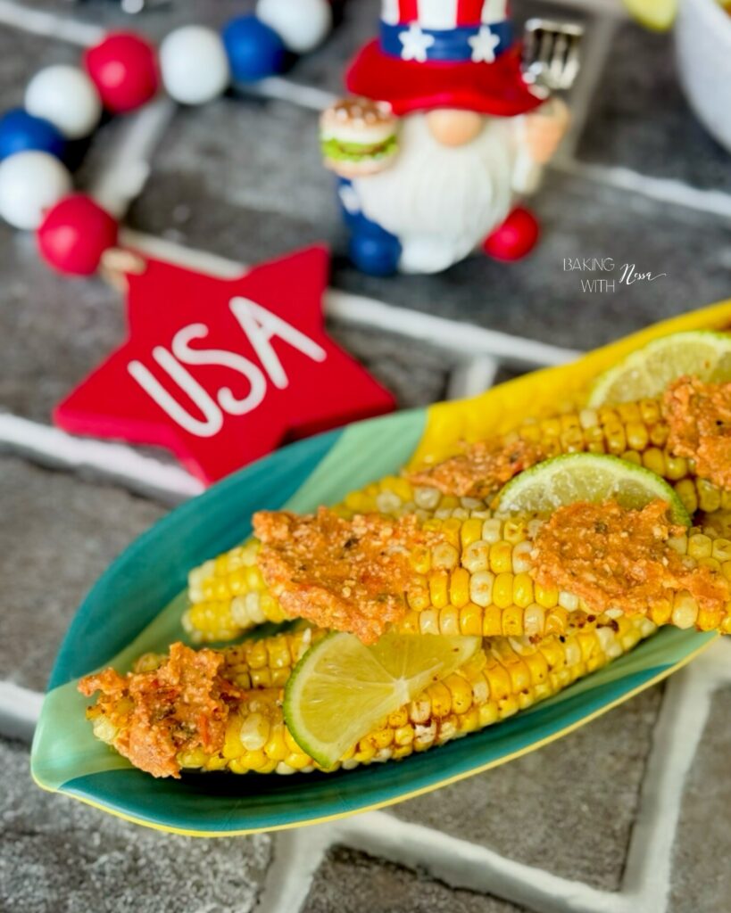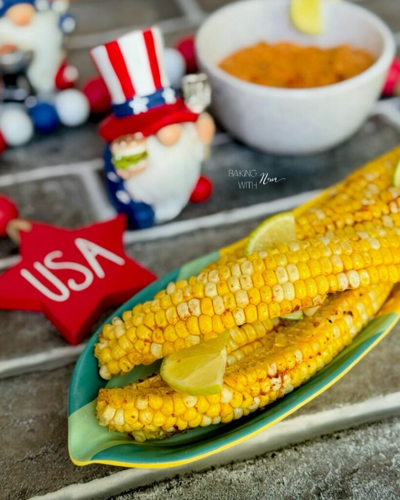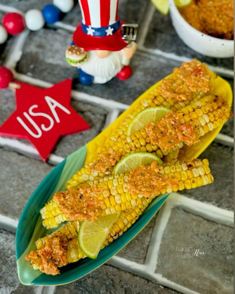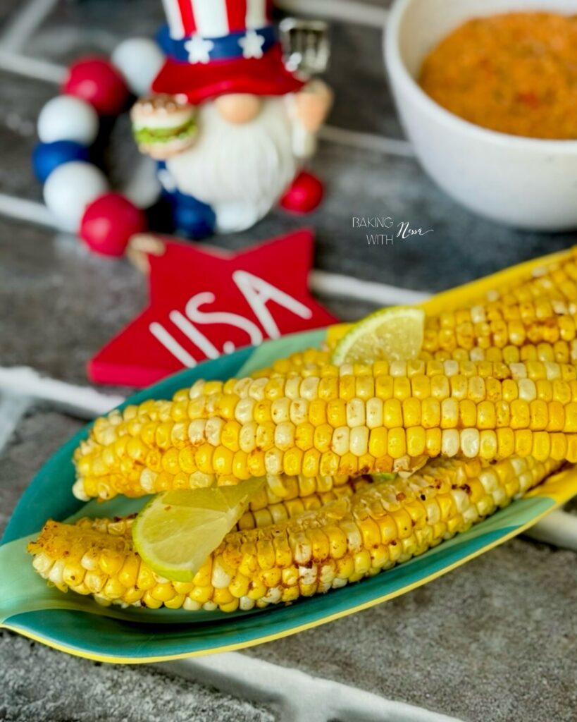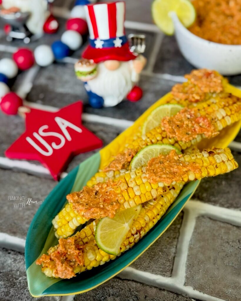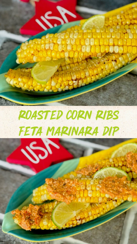 Quick and easy to make these Roasted Corn Ribs with Feta Marinara dip are the perfect crowd pleaser. It is also the funniest way to eat corn! You can prep these ahead of time and serve them hot or cold. They are great as a snack, side dish, or appetizer for your Summer BBQ and picnics!