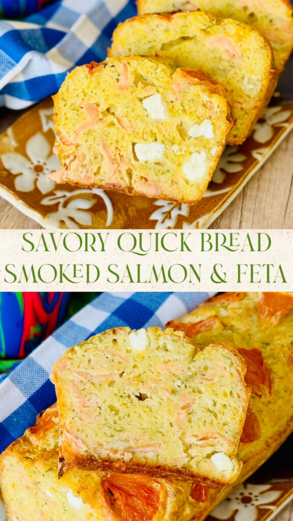 This savory quick, one bowl, bread with Smoked Salmon, Feta Cheese and Dill tastes like a Summer vacation around the Mediterranean Sea. Made without yeast, you do not have to wait around for it to rise: Mix it, bake it and enjoy it as a light meal with a side salad or as an appetizer at your next Summer gathering!