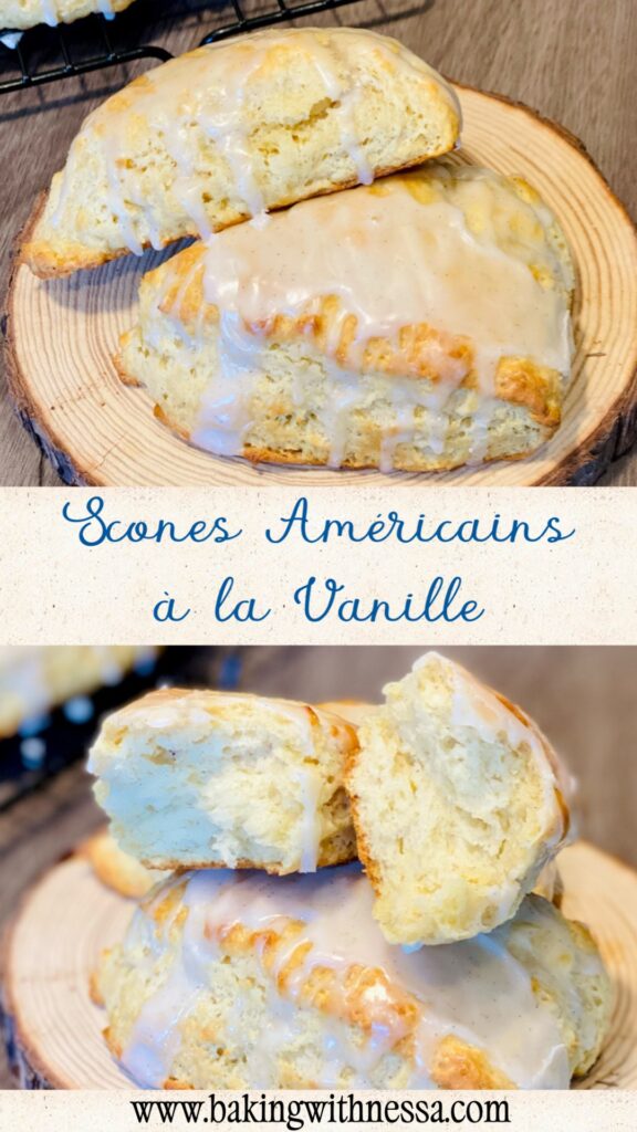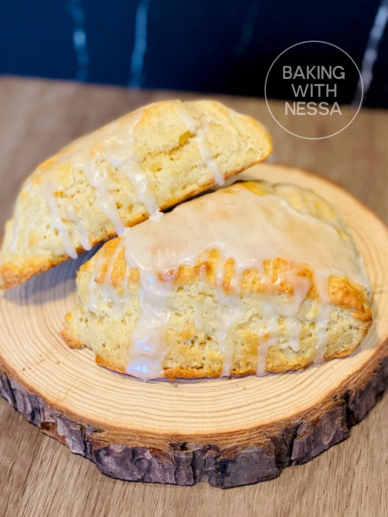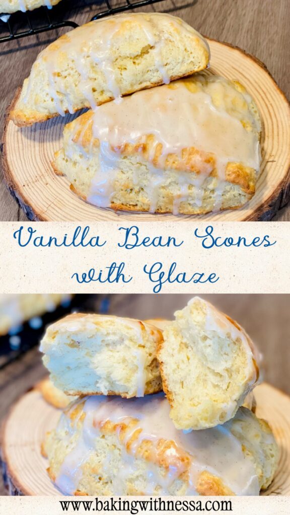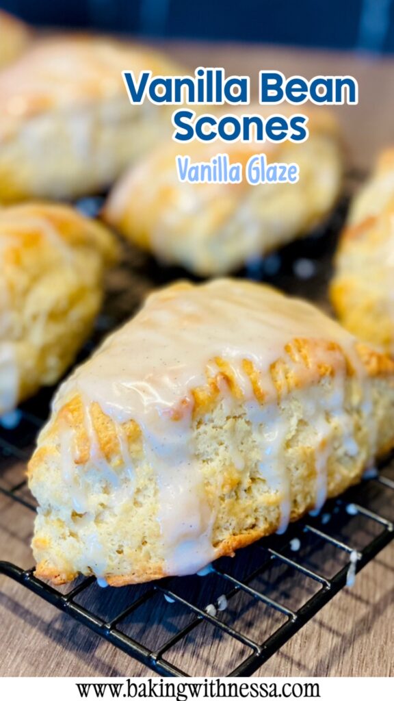 These vanilla bean scones are a classic American bakery favorite, made with tangy buttermilk for an ultra-tender crumb and real vanilla bean for deep, aromatic flavor. Baked until golden, cut into wedges, and drizzled warm with a glossy vanilla bean glaze, they are buttery, lightly sweet, and perfect for breakfast, brunch, or afternoon tea.